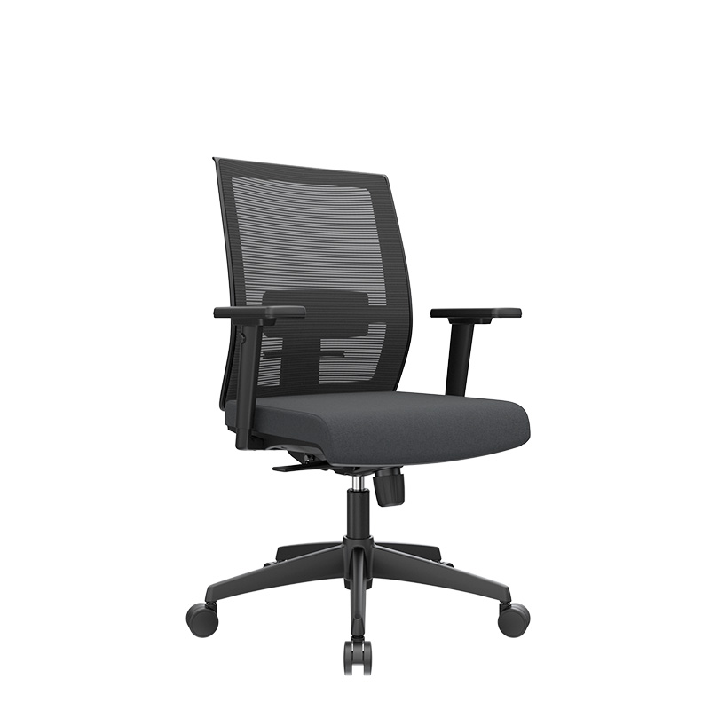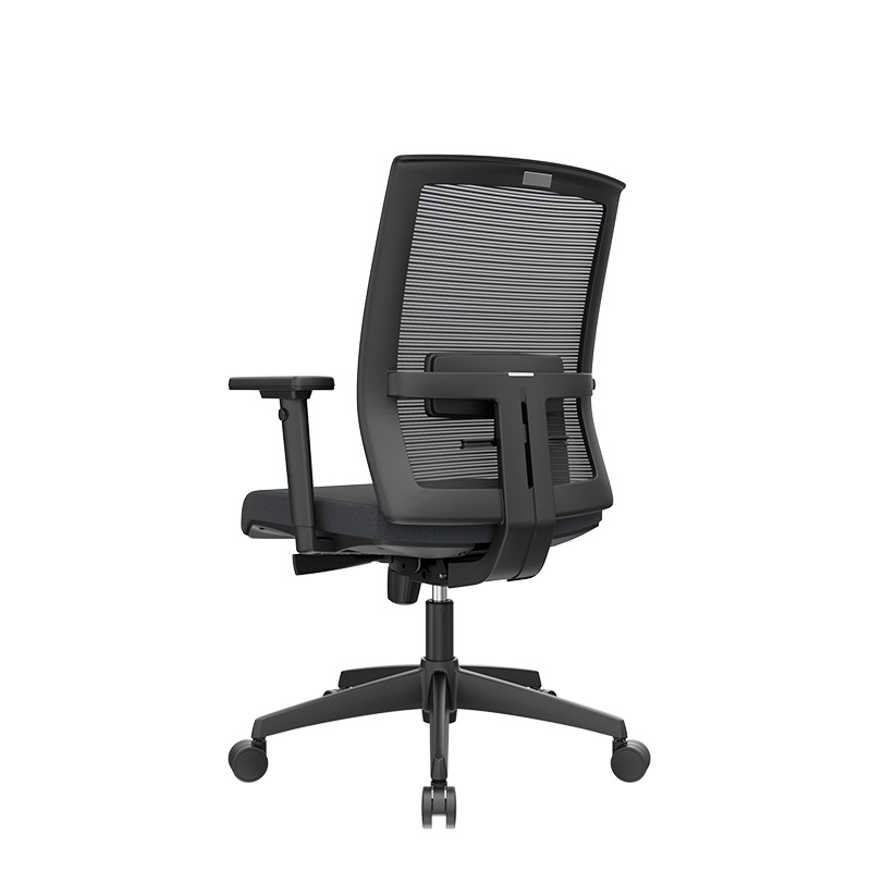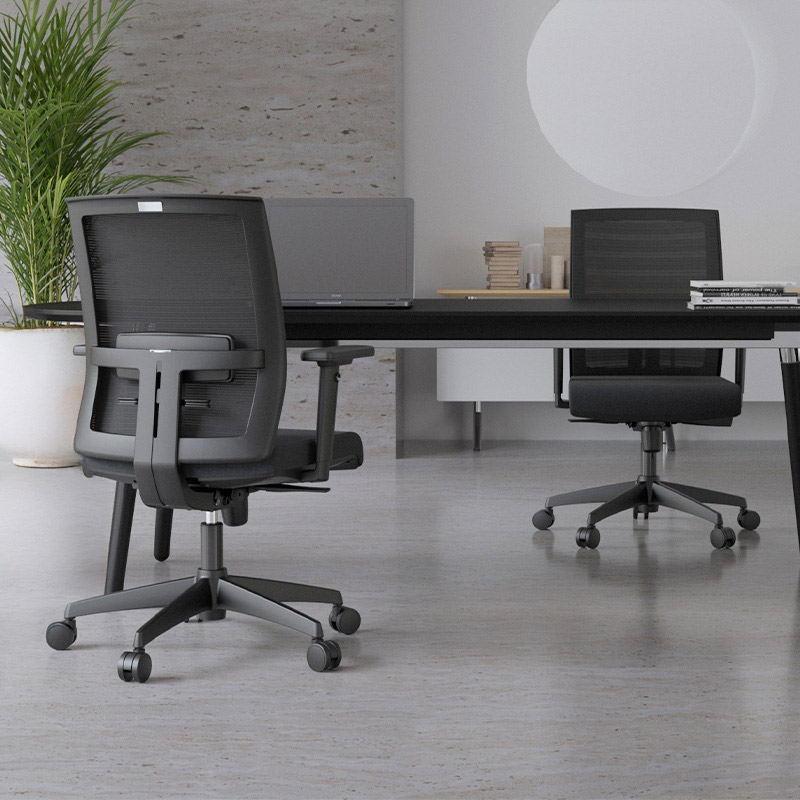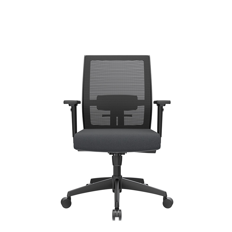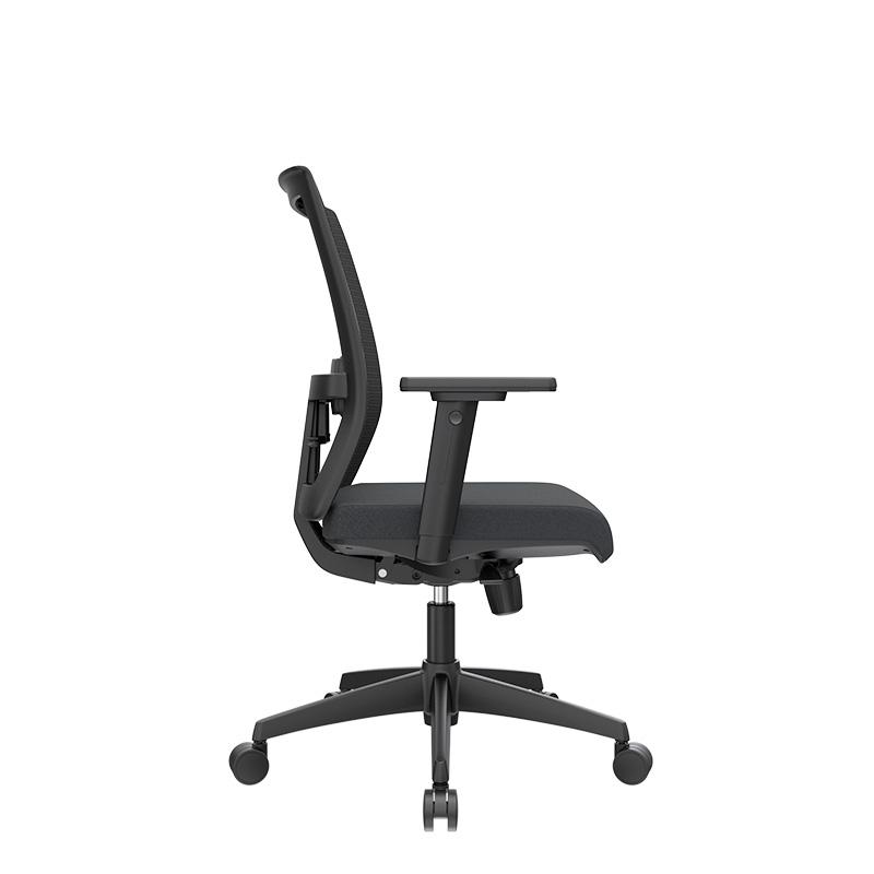 La silla Noha Gerente en color negro ofrece una combinación equilibrada entre diseño actual, soporte confiable y comodidad funcional para oficinas modernas y dinámicas; su espaldar en malla poliéster favorece la ventilación, el apoyo lumbar regulable en altura mejora la postura, los brazos 3D en poliuretano permiten un ajuste ergonómico preciso y el asiento inyectado tapizado en paño aporta firmeza y confort, complementado por un mecanismo Syncro de cuatro bloqueos con antirretorno y control de tensión, además de base y ruedas en nylon que garantizan movilidad ligera y estable en el uso diario.