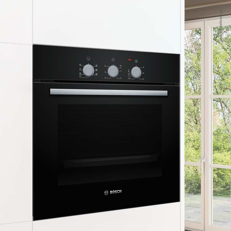 El Bosch HBF011BA0 es un horno diseñado para quienes buscan resultados de cocción uniformes y confiables en cada receta. Su estética elegante en color negro, combinada con un panel de mandos intuitivo y un interior amplio de 66 litros, lo convierten en la opción ideal para cualquier cocina moderna. Cuenta con la innovadora tecnología 3D HotAir, que permite cocinar simultáneamente en hasta tres niveles con una distribución perfecta del calor.