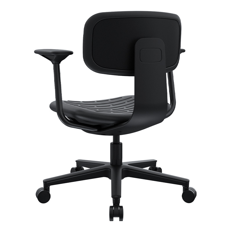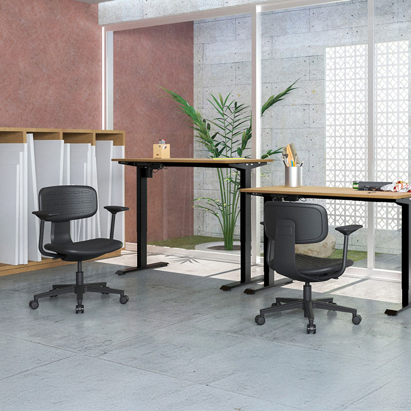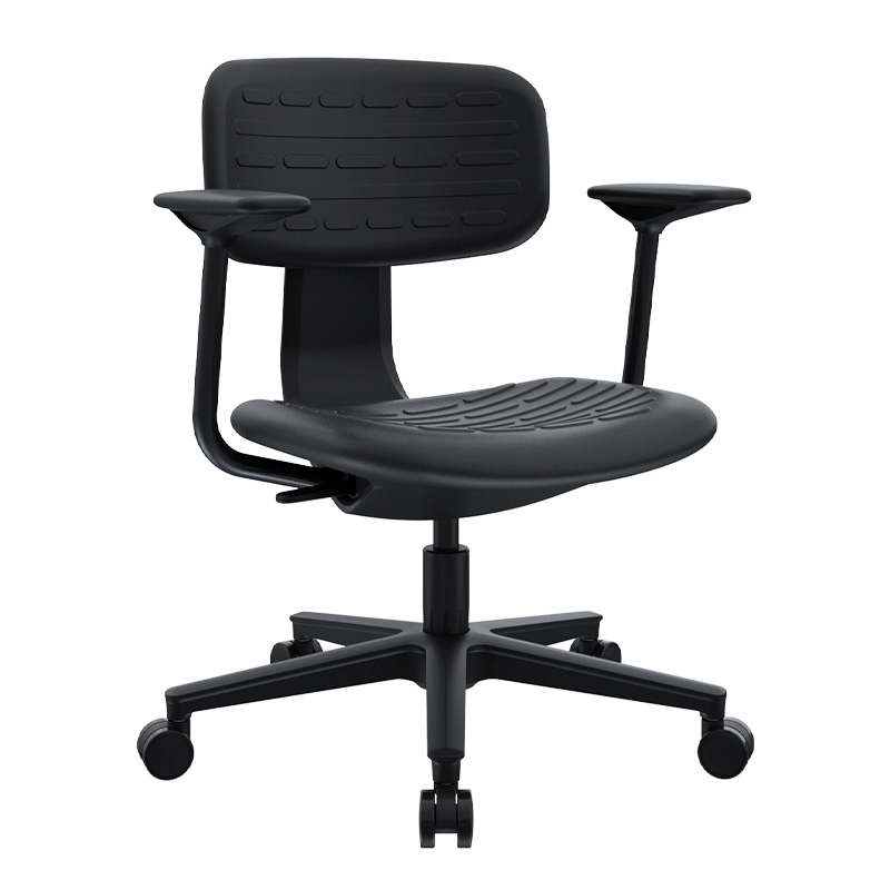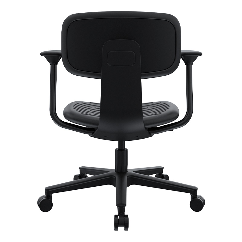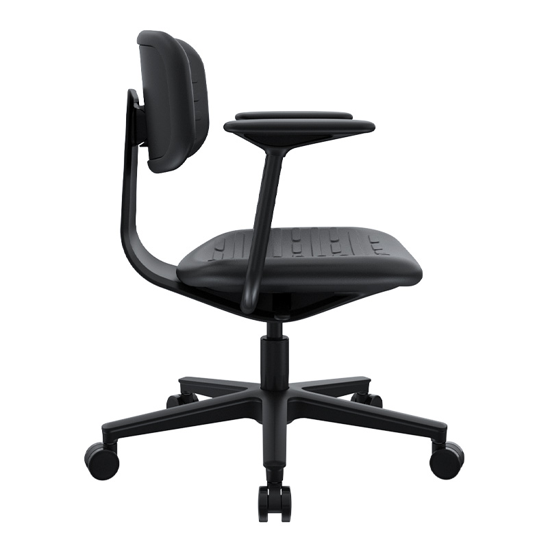 La silla Kan con brazos mantiene una línea sencilla y resistente, pensada para acompañar jornadas de trabajo continuas con una sensación de soporte firme. Su espaldar y asiento inyectados en poliuretano brindan una superficie estable y confortable, mientras que los brazos fijos en polipropileno aportan apoyo constante sin interferir en la movilidad básica. El mecanismo semi reclinable introduce un leve juego de inclinación que acompaña los cambios de postura, logrando un equilibrio entre solidez, funcionalidad y uso práctico en entornos operativos o administrativos.