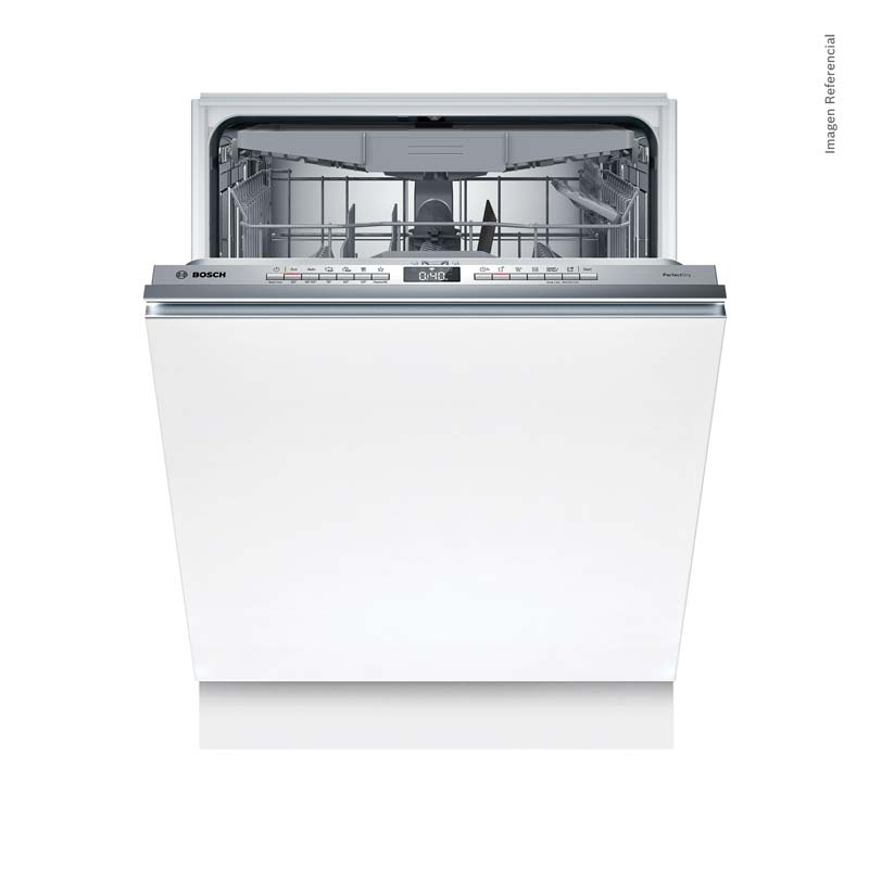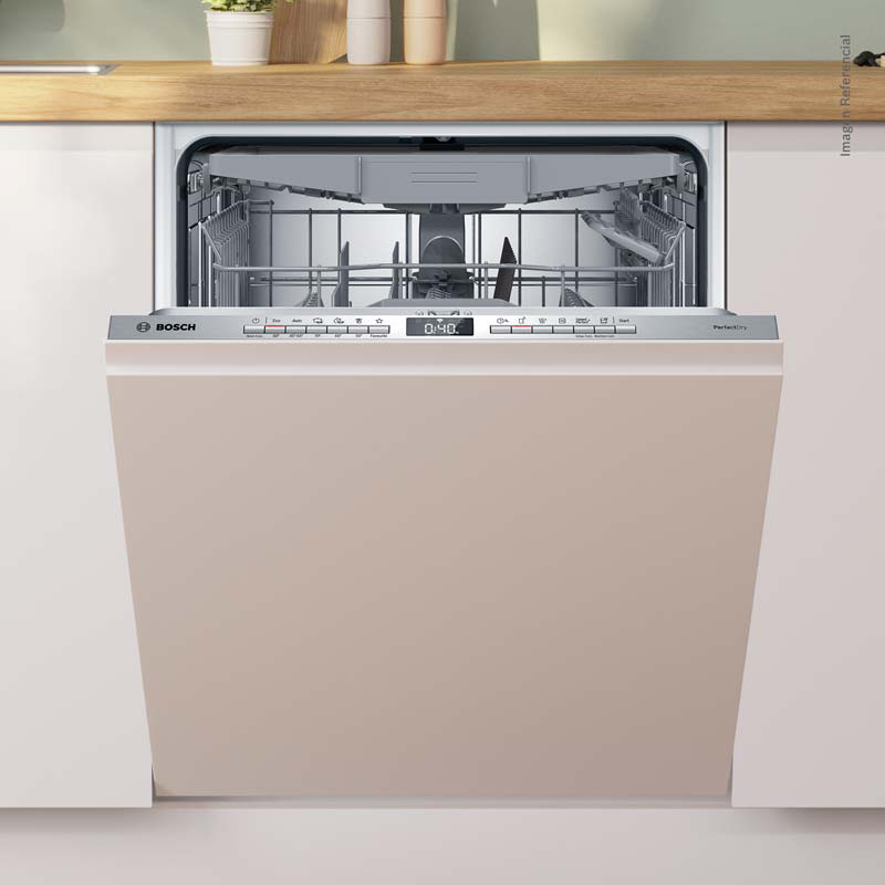 Lavavajillas de 60 cm totalmente integrable con capacidad para 14 servicios. Con HomeConnect, controla tu lavavajillas inteligente desde el celular y sigue el lavado en tiempo real. Ofrece 7 programas y 4 funciones especiales, como Extra Secado y SpeedPerfect+. Consumo de agua a partir de 9 litros. El sistema PerfectDry con Zeolitas transforma la humedad en calor, ofreciendo el mejor secado posible durante toda la vida útil. Incluye bandeja VarioDrawer, Rackmatic con tres niveles de altura y AquaStop. Confía en Bosch, la marca N.º 1 del mundo por 9 años consecutivos.