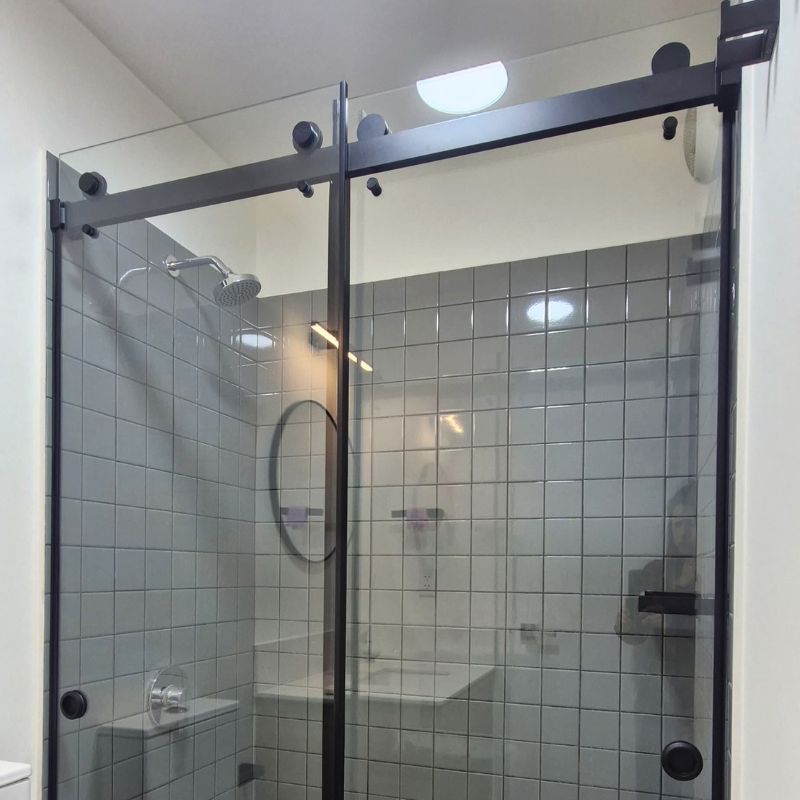 Su barra compacta de mayor grosor brinda estabilidad y soporte superior, permitiendo la instalación de dos hojas corredizas. Una solución elegante y resistente para baños modernos.