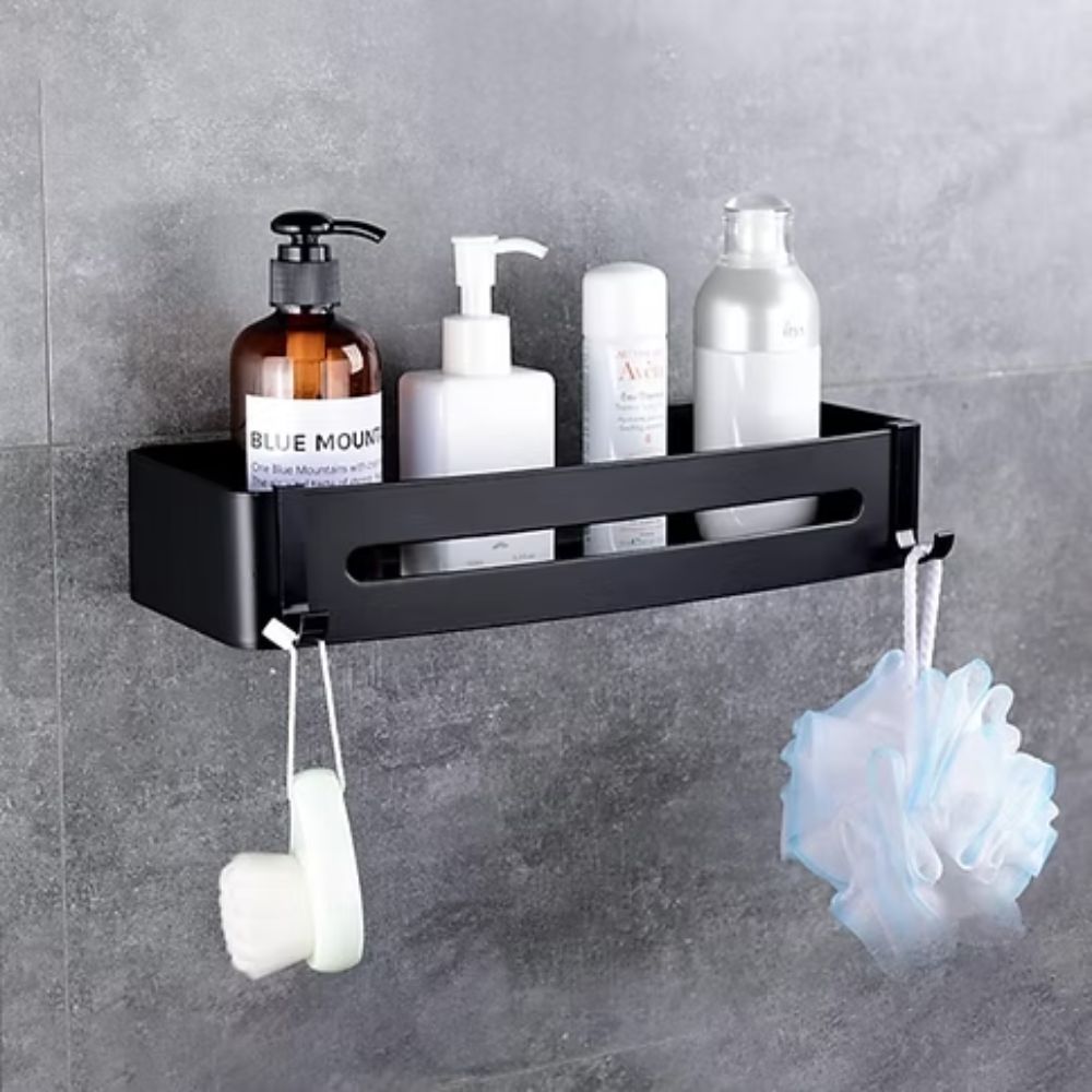 Repisa organizador rectangular de acero inoxidable #304 con ganchos tipo percheros, brinda una belleza insuperable a su baño para garantizar una apariencia impecable durante muchos años, resistente al óxido y la corrosión.