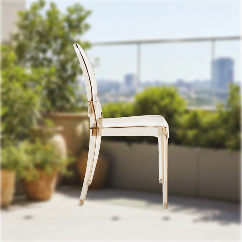 La Silla Crystal Clear aporta ligereza visual y elegancia contemporánea. Fabricada en policarbonato transparente de alta resistencia, es ideal para espacios que buscan amplitud y un look moderno sin saturar el ambiente. Su diseño ergonómico ofrece comodidad y estabilidad, perfecta para comedor, oficina, salas, terrazas techadas o eventos.