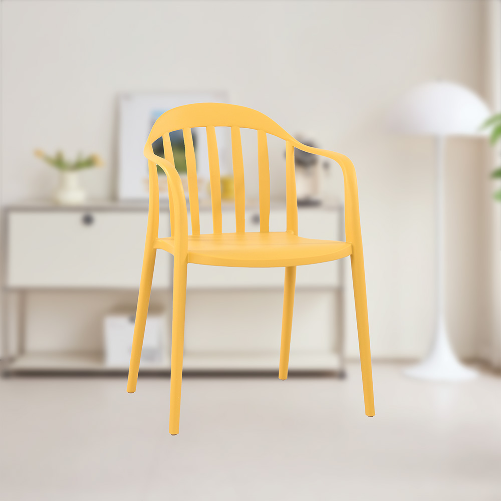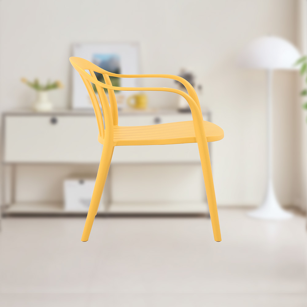 Fabricada en polipropileno de alta resistencia, la Silla Pisano ofrece durabilidad, estabilidad y fácil mantenimiento, cualidades ideales para uso diario tanto en interiores como en terrazas techadas o espacios semi exteriores. Su diseño ergonómico proporciona una postura cómoda, mientras que sus apoyabrazos integrados aportan mayor confort durante el uso prolongado.