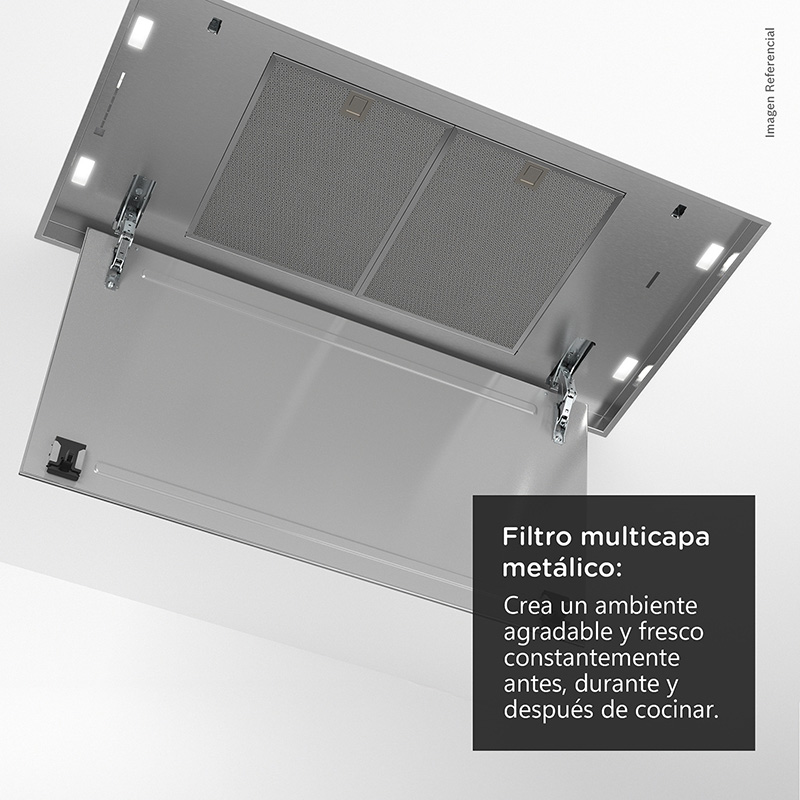 De instalación a techo, este extractor Bosch se integra con elegancia total en la cocina moderna. Su Control encimera–campana y conectividad HomeConnect permiten un manejo inteligente y sin esfuerzo. Ofrece una potencia de extracción de hasta 798 m³/h, filtro multicapa con marco de acero inoxidable lavable en lavavajillas, y 3 + 2 niveles de potencia, con un funcionamiento silencioso de 56 dB. Compatible con instalación extractora o recirculante, brinda aire puro con distinción alemana.De instalación a techo, este extractor Bosch se integra con elegancia total en la cocina moderna. Su Control encimera–campana y conectividad HomeConnect permiten un manejo inteligente y sin esfuerzo. Ofrece una potencia de extracción de hasta 798 m³/h, filtro multicapa con marco de acero inoxidable lavable en lavavajillas, y 3 + 2 niveles de potencia, con un funcionamiento silencioso de 56 dB. Compatible con instalación extractora o recirculante, brinda aire puro con distinción alemana.