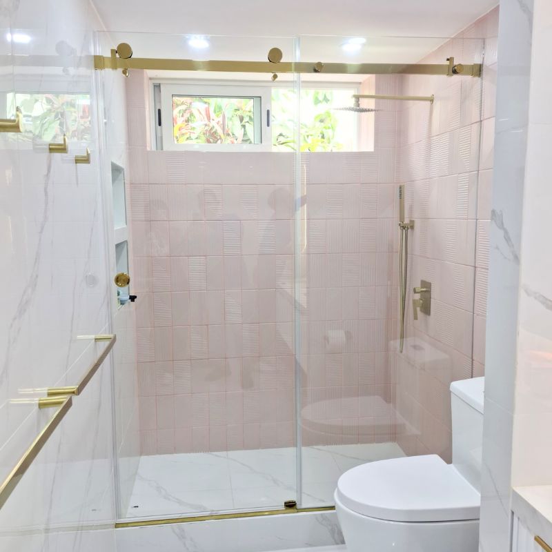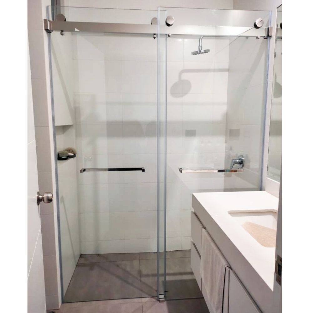 Su barra compacta de mayor grosor brinda estabilidad y soporte superior, permitiendo la instalación de dos hojas corredizas. Una solución elegante y resistente para baños modernos.